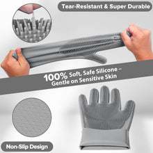 【Pet Grooming Gloves】Made from tear-resistant silicone and high-density bristles, the durable, long-lasting grooming gloves for dogs function as a brush, scrubber, and massager. With 3,000 silicone grooves, the dog bathing gloves create rich foam, deeply clean, and save shampoo, making bath time faster and easier. The versatile dog cleaning gloves also remove fur, trap 50% more hair, and reduce shedding