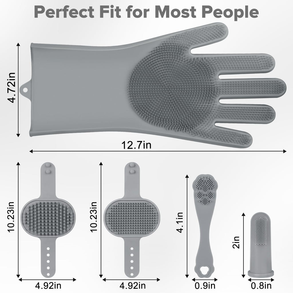 【Premium Pet Supplies】Our 6PCS pet grooming kit includes 2PCS pet grooming gloves, 2 PCS dog washing brush, and 2PCS dog finger toothbrush to meet all your pet care needs—bathing, grooming, hair removal, massaging, and oral care. Crafted from soft, premium silicone, it’s safe and gentle for dogs, cats, horses, and other pets