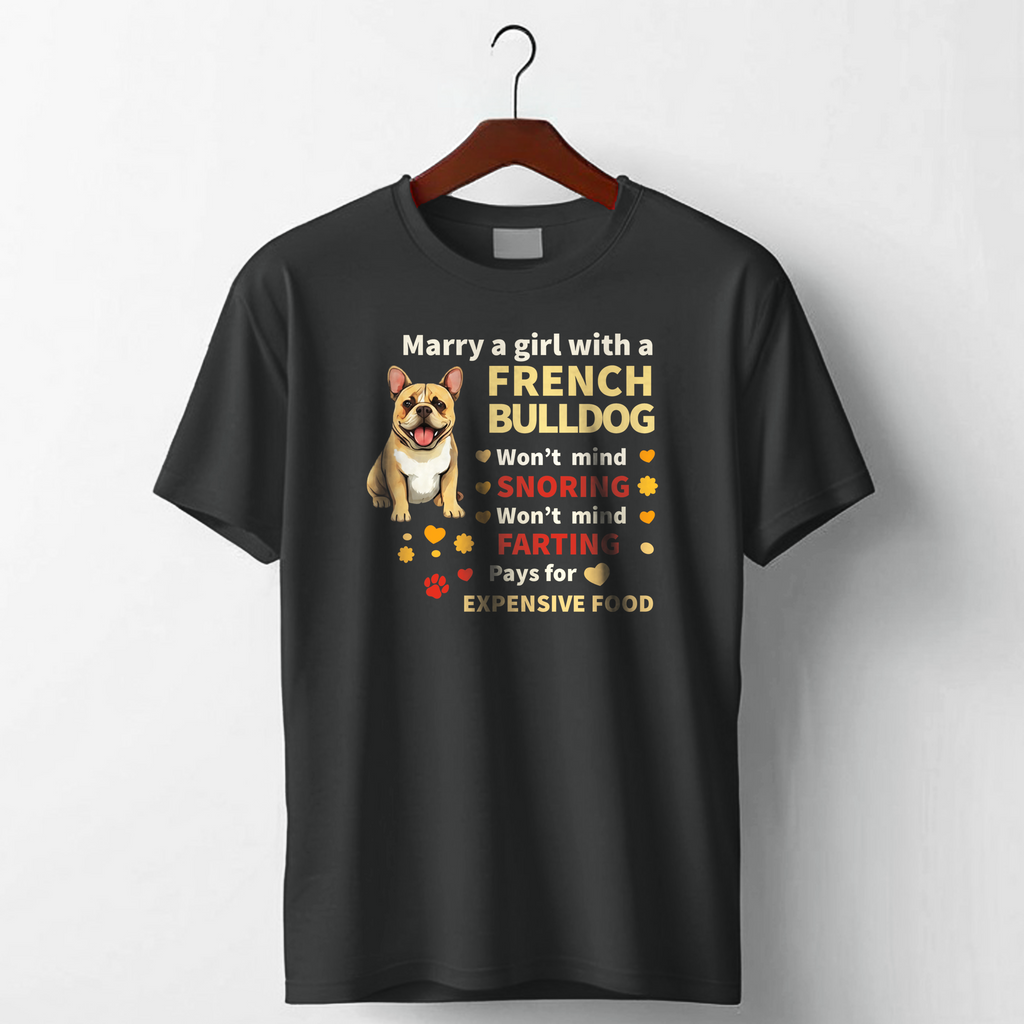 Show off your dog dad pride in style with the DoggFattherz Frenchie Contract Black T-shirt. Made from soft, breathable fabric, this T-shirt offers all-day comfort for casual outings, dog walks, or lounging at home. A wardrobe essential for every proud dog dad.